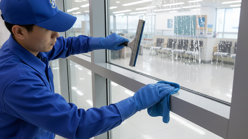 - 출입문, 유리창, 거울, 유리 등의 청소 작업