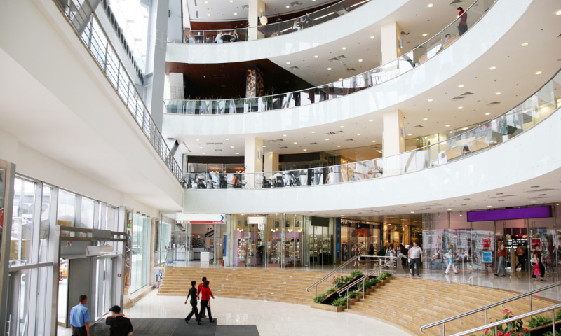다양한 매장과 이용 공간이 있는 상가 및 복합쇼핑몰
